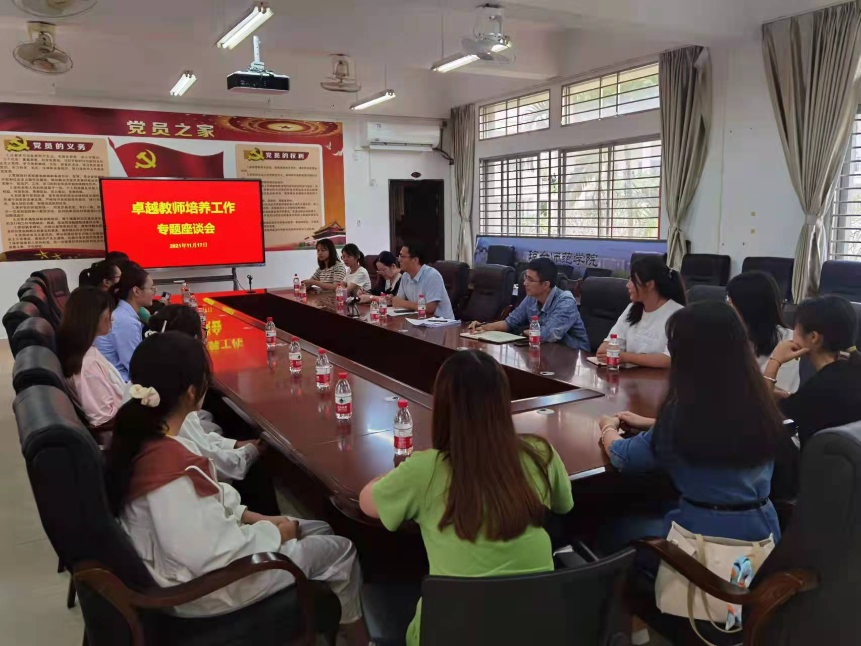 2021年11月17日下午,教务处组织召开卓越教师培养工作专题座谈会。座谈会在文学院会议室举行,教务处分管“奎星班”项目负责人、各科室管理人员,文学院和理学院相关党政负责人以及卓越教师培养项目“奎星班”的相关工作负责人、专业导师、任课教师和学生代表参加此次座谈会。