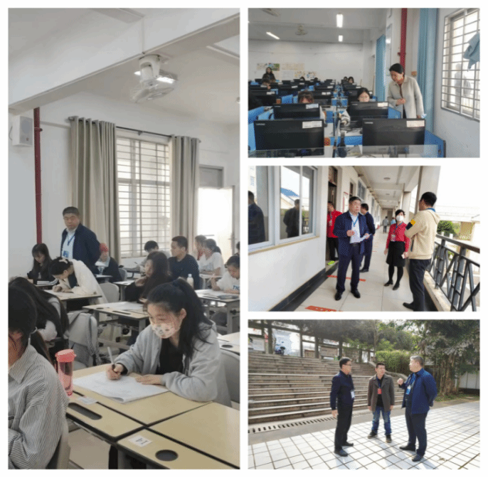 根据2022年秋季学期教学工作的调整与安排,通识课程和专业课程期末考试延期至本学期初2月25-26日以及3月4-5两个周末举行。学校领导对考试安全、稳定、有序组织高度重视,考前对期末考试工作提出明确要求和部署。考试期间,银海强副校长亲临考试现场巡考,检查试卷的命题质量并与各二级学院院长书记深入探讨与交流。银海强强调期末考试是检验教学效果、保证教学质量的重要手段,也是引导教师教和学生学的指挥棒,相关部门和学院高度重视。既要认真执行各项考试规章制度,抓好试卷命题管理、考试组织、考试诚信教育等工作,以良好的考风带学风促教风,还要积极推进课程考核评价改革,做到知识和能力并重,通过科学多样化考核评价,引导学生养成良好的学习习惯,激发学生动脑动手,突出实践能力和创新意识的培养。