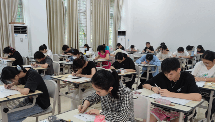 考场上,同学们神情专注,认真规范书写每一个汉字,用心生动描绘每一幅图画,争取展现自己最好的水平。