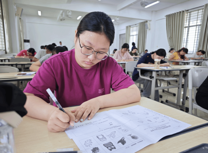 考场上,师范生们全神贯注、凝神运笔,展现出扎实的功底与饱满的精神风貌。