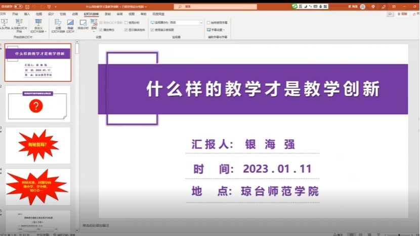 为进一步深化教育教学改革,提升我校教师教学创新能力与水平,推动信息技术与教育教学融合创新发展,助力备战教师教学创新大赛的教师科学进行教学创新设计,实现“以赛促教、以赛促学、以赛促改、以赛促建”的目标,我校分别于1月10日和11日邀请湖南师范大学易立文博士和我校银海强副校长于线上开展“深化新教改 打造新形态-──以创新教育形式推进教育变革”和“什么样的教学才是教学创新”专题讲座。讲座分别由银海强副校长和教务处石晶处长主持,各二级学院领导、有关教师和教学管理人员共两百多人线上聆听两场讲座。