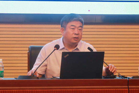银副校长结合一流本科课程的申报条件及评审指标,深入分析了金课“高阶性、创新性、挑战度”的内涵,阐述了如何从目标、内容、技术、模式四个方面融合创新,建设一流本科课程。他强调,一流课程建设要突出学生中心,注重能力培养,教学内容要体现先进性、前沿性、科学性与时代性及“四新”要求。要把改革课程考核评价作为重要抓手,进一步激发学生学习动力和专业学习兴趣。