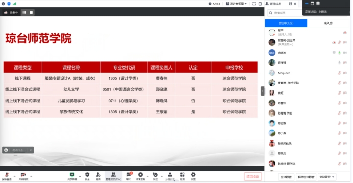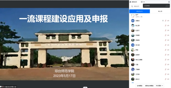 课程建设是学校教育教学改革工作的重点,我校将在课程建设上持续发力,不断加强一流本科课程建设,不断提高人才培养质量。本场讲座效果良好,老师们反映收获颇多。各二级学院院长、副院长以及各类课程改革项目负责人共计150多人线上参加了讲座。
