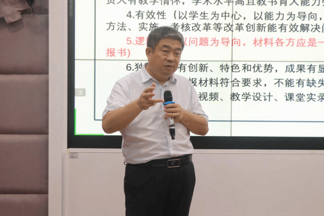 银海强副校长重点分析了国家级一流本科课程认定的申报条件,明确指出,课程建设要突出学生中心,注重能力培养,要提升课程的高阶性、创新性与挑战度,让学生有跳一跳就能够得着的体验感和成就感。他特别强调,“课程思政”建设成效是衡量五类一流本科课程的首要标准,教师在申报时要加以重视,在课程改革中要注重学习领会《高等学校课程思政建设指导纲要》等文件精神,将课程思政融入课堂教学中。